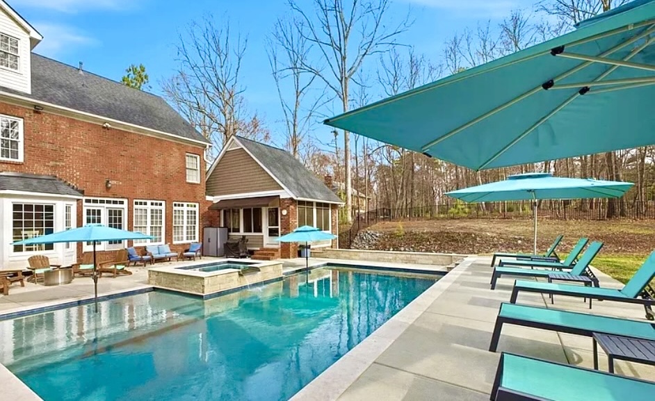 Enjoy resort living in your own backyard – the custom saltwater pool with waterfall spa, tanning ledge, and deep-water bench were built in 2023. The open-floor-plan great room with floor-to-ceiling windows, breakfast area, and large kitchen overlooks and spills out to the oversized backyard patio and pool.